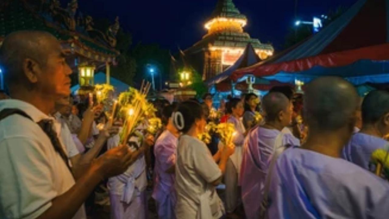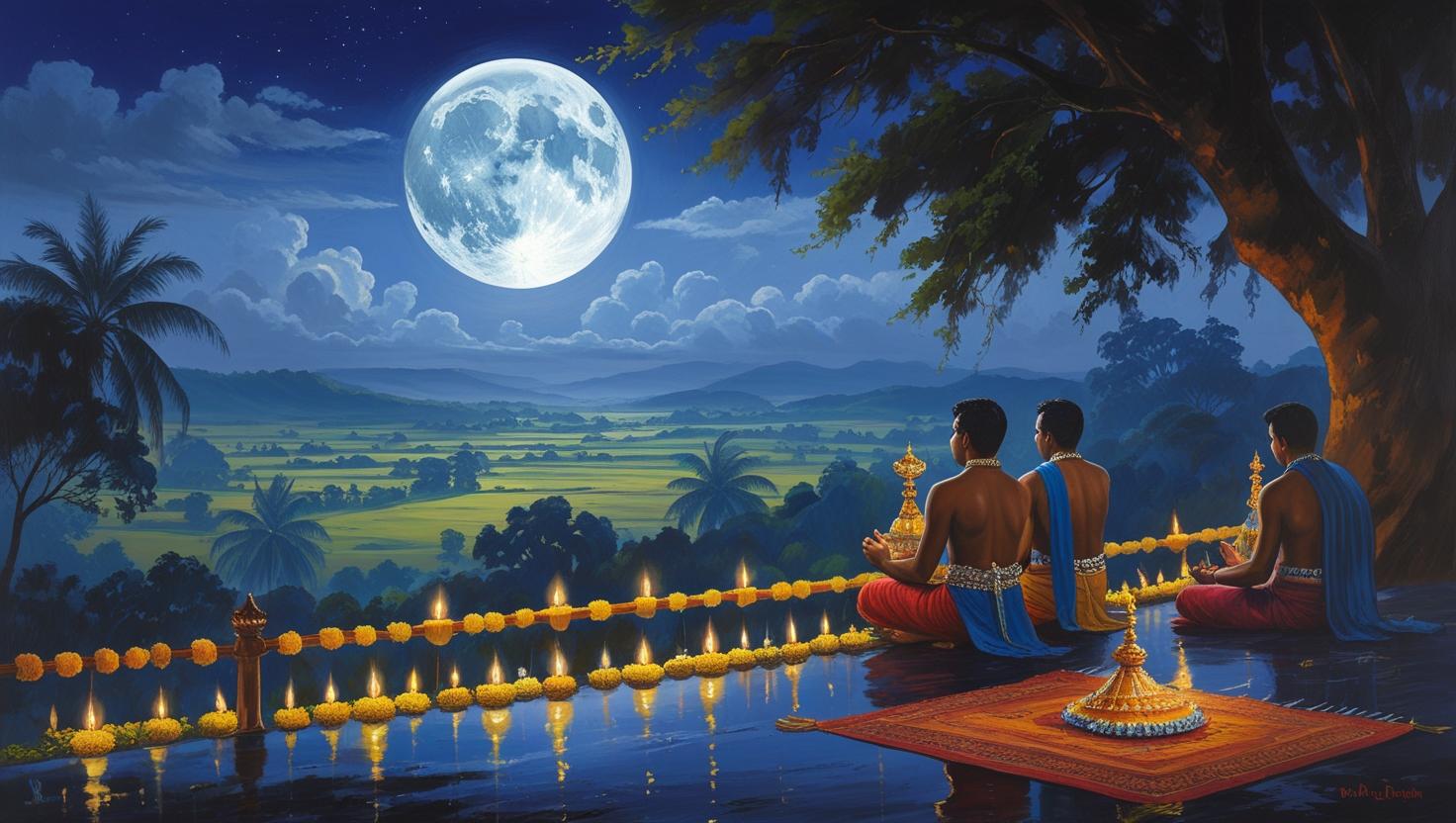 - 🕊️ Peaceful Observances: Buddhists spend time in temples meditating, observing sil (precepts), and reflecting on the teachings of the Buddha. The atmosphere is serene, introspective, and filled with spiritual stillness.